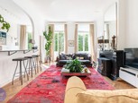 Van zodra je hier de inkomdeur opent val je instant voor de charmes van de karaktervolle details die dit gebouw te bieden heeft. Een mozaïekvloer, smeedijzeren hekwerk, een historische kooilift,… en dan ben je het eigenlijke appartement nog niet ingestapt.  Dat doe je in de ruime living die met een sierboog én bar ook meteen toegang geeft tot de keuken. Het geheel biedt een zee van daglicht - en een ideale spot voor een romantisch dinertje met zicht op het groen van de Amerikalei. Zin in mee...