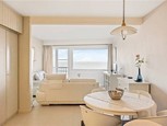 Klassevol gemeubileerde studio in een landelijke stijl met een fenomenaal zicht op zee. De gezellige leefruimte is ingericht met een lederen salon die u laat genieten van het fantastisch zicht op zee. De talrijke ingemaakte kasten bieden u praktische opbergruimte en een bedkast. In de open keuken vinden we alle modern comfort en aanpalend een geriefelijke berging. De bijpassende raamdecoratie en makkelijk te onderhouden tegelvloer maken de ruimte compleet. De hal leidt ons naar de bad...