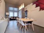 Alliance Partners vous propose à la vente cet appartement situé à proximité de toutes les commodités (accès autoroutiers, magasins, écoles,...). Il se compose comme suit :  Premier étage : Salon (18m2), salle à manger et cuisine équipée (15m2), hall de nuit (6m2), salle de douche (5,5m2), wc avec lave main, buanderie 2,5m2), chambre 1 (13,5m2), chambre 2 (12,5m2), terrasse (5m2). Technique : Chauffage central gaz, production d'eau chaude sur la chaudière, châssis PVC double vitrage, vidéop...
