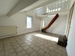 Situé au 1er étage d'un immeuble de 2 logements et proche de toutes commodités, découvrez ce spacieux appartement de +/- 125m². Comprenant au rez : salon de 23m², salle à manger, cuisine équipée, 1 chambre, 1 salle de douche (+ emplacement machine à laver). A l'étage : 1 mezzanine de 13,5m² (dressing/bureau) et une grande chambre de 36m². Loyer : 700€ hors charges. Pas d'extérieur. Hall commun, compteurs individuels (eau, gaz,électricité). Libre de suite.