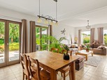 Ruime gelijkvloerse woning met grote tuin te Herselt. Deze prachtige gelijkvloerse woning biedt alle comfort op één niveau. Bij het binnenkomen word je verwelkomd in een ruime inkomhal met een gastentoilet. De hal leidt naar de lichtrijke leefruimte, die dankzij de grote raampartijen baadt in natuurlijk licht en een uitzicht biedt op de voortuin. De volledig uitgeruste keuken is voorzien van alle moderne toestellen, waaronder een koelkast, diepvriezer, oven, kookplaat, dubbele lavabo en v...