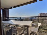 Gelegen op de 7e verdieping, mooi appartement van ca. 120m2 met terras van 8,5m2. Het appartement bestaat uit: een hal, wc, een woonkamer van 35m2 met toegang tot het zuid-west terras, een ingerichte keuken, 2 slaapkamers van 14,7m2 en 12,6m2, een berging, 1 badkamer en 1 doucheruimte. Kelder: 1 kelder en 1 grote garage voor 1 auto.