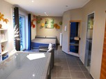 Een groot en steeds vernieuwend gebouw momenteel uitgebaat als wellness en barbershop met privé woonst en grote parking langsheen baan met veel visibiliteit. Kan perfect dienen tot woonst met kantoren, praktijk vrij beroep, winkel, ... Momenteel zijn op het gelijkvloers volgende aanwezig: 2 praktijkruimtes, wellness met sauna, hamman, infrarood, jacuzzi, douche, prive tuin, leefruimte, keuken en verhuurde barber shop (aparte ingang en mogelijks op te zeggen, contract korte duur). Boven zijn v...