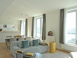 Modern gemeubeld appartement met drie slaapkamers en terras.