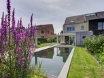 Architecturale woning met buitenzwembad en tuinkantoor
