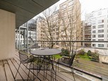 (Aarlenstraat, 39 - 1000 Brussel) Ideaal gelegen in het hart van de Leopoldwijk en omringd door de belangrijkste Europese instellingen, mooi gemeubeld appartement op de 2de verdieping met lift, bestaande uit: ingerichte keuken, woonkamer, 1 slaapkamer, badkamer, apart toilet, terras met uitzicht op de woonkamer. Vuilnisruimte, wasruimte in de kelder en optionele parkeerplaats. Maandelijkse huur: €1.350 (huur) + voorziening voor kosten van €250 (gemeenschappelijk, water, verwarming, elektric...