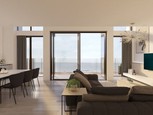 Exclusief gloednieuw duplexappartment van +/- 139 m² op de achtste en negende verdieping in dit stijlvol nieuwbouwproject. Perfect gelegen te Knokke-Heist en met panoramisch frontaal zeezicht en schitterende verzichten. Vooraan de achtste verdieping heb je de woonruimte met elegant zitgedeelte genietend van een open indeling en fantastisch wijds zicht op zee uitgevend op het terras.    Achteraan is er een moderne open keuken voorzien van hoogwaardige ingebouwde toestellen die naadloos samenko...