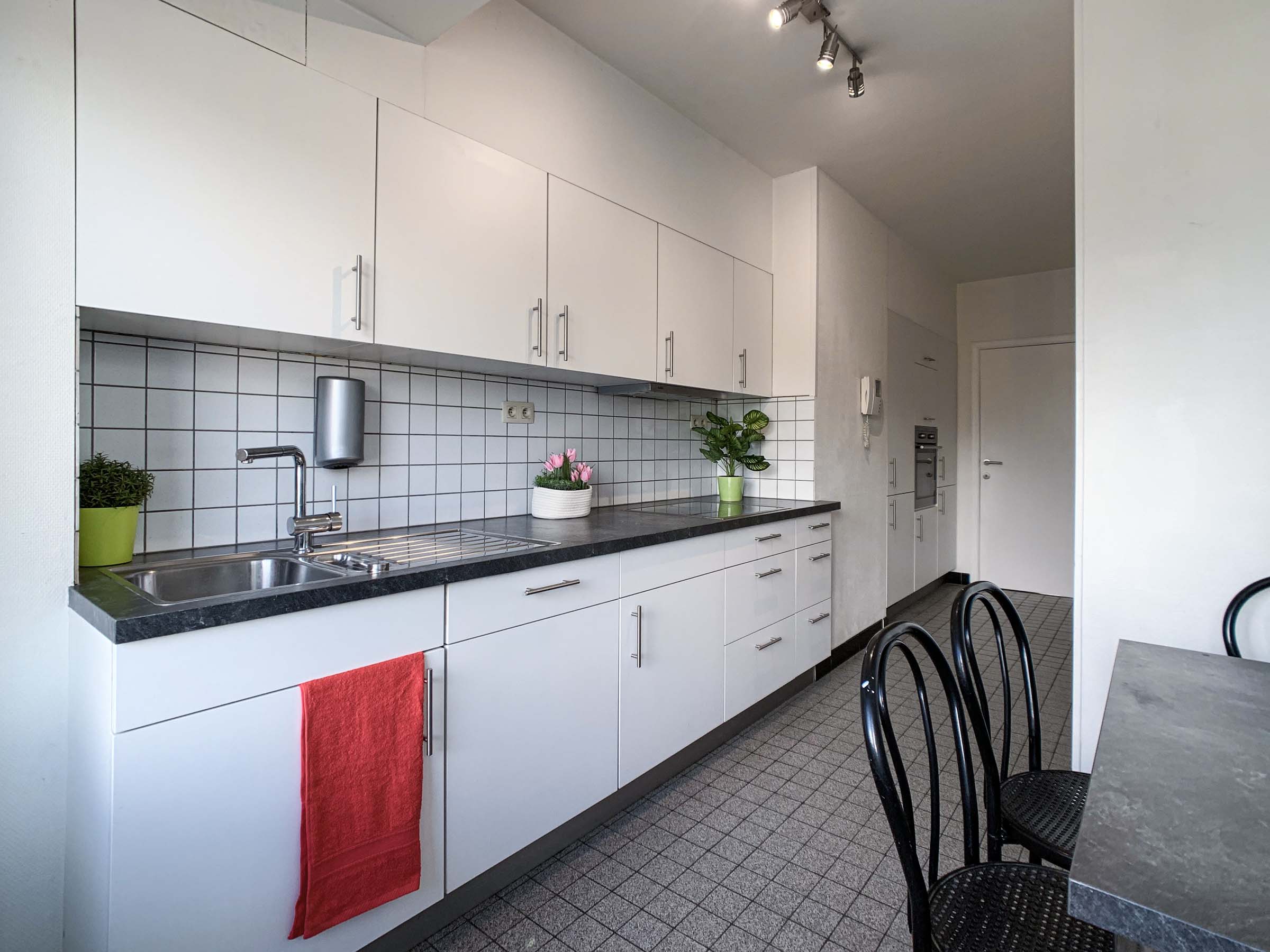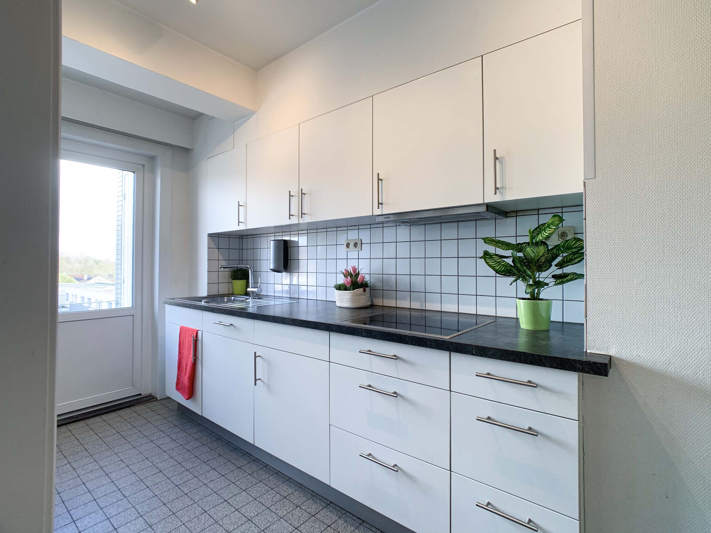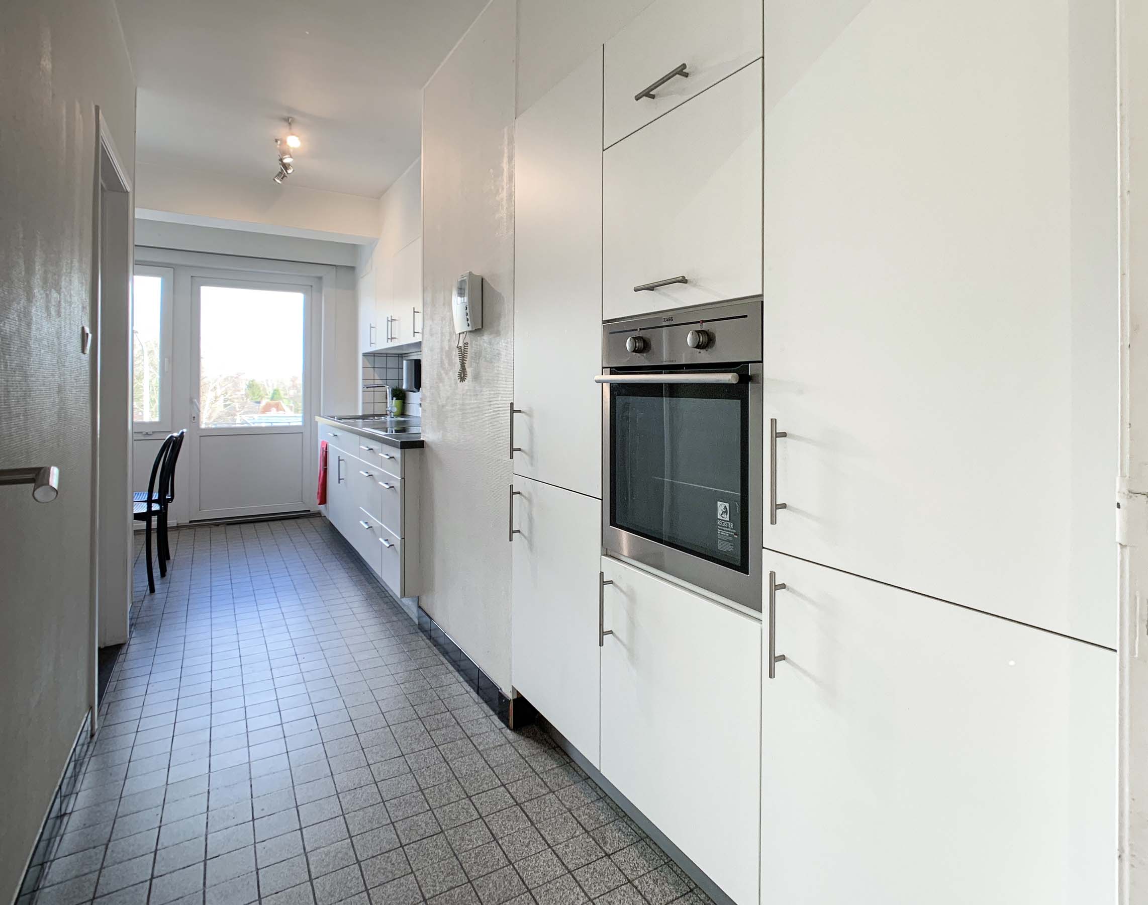 Keuken 6,1m x 2,2m = 13,2m² ( tegelvloer, inclusief ingebouwde wasmachine )