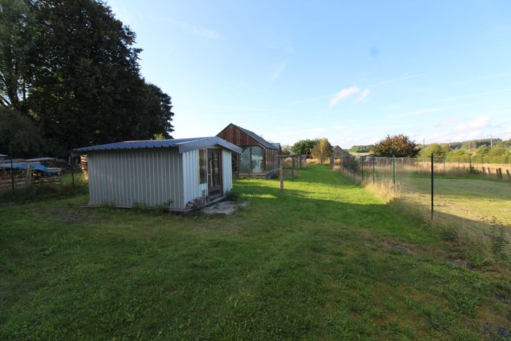 Très grand jardin de plus de 28 ares, avec remises, serre et poulailler. Structures légères pouvant être démontées aisément. RC net : 852 €.
