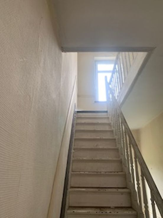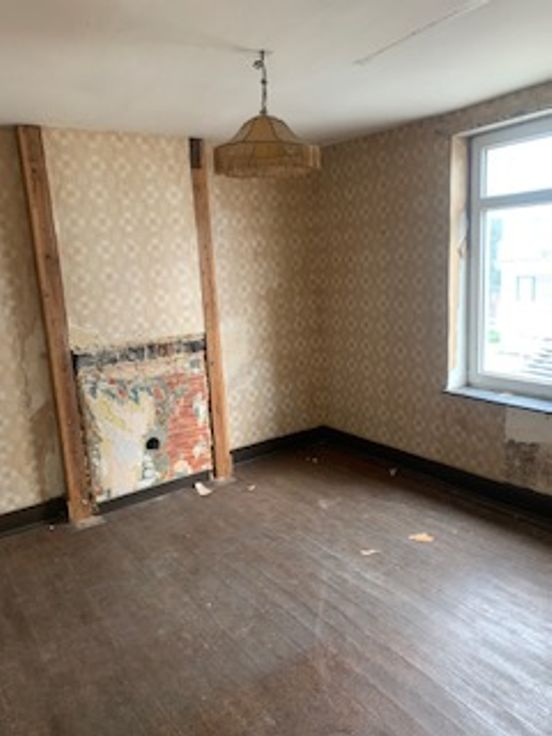 MAISON lumineuse sans garage (2 chambres, 1 salle de bain à réaliser). 4niveaux d’environ 40 m². Gaz de ville, les eaux usées à l’égout. Grand séjour. Il faut réaliser une annexe pour avoir une cuisine. Escalier. A l'étage 2 grandes chambres et une pièce à aménager en salle d’eau. Deuxième escalier vers un grand grenier aisément aménageable. Au sous-sol, des caves d’une superficie d’environ 40 m². Le jardin bien orienté (sud-sud-ouest). Endroit calme. Rénovation complète à prévoir. Châssis DV PVC (1990). Électricité non conforme. L’ensemble est bien orienté et bien situé, à proximité d’écoles, magasins, cinéma… 10’ à pied de la gare, du centre de Jambes. 1 km de la Meuse. PEB PEB "G" - 528 kWh/m².an - 71 366 kWh/an - n°20210622005107. A découvrir ! Me contacter uniquement par téléphone. Je ne réponds pas aux demandes par mail. Merci de votre compréhension.