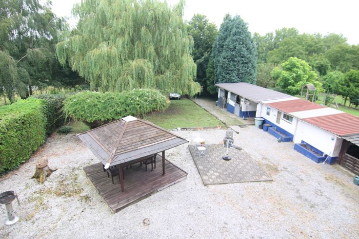 NUMERO 37 : Living de 26.13 m² , cuisine équipée en chêne massif 13.2 m², garage de 56 m² , WC séparé avec lave mains , pièce de 9.7m² donnant sur le jardin . A l'étage 1 chambre de 20m², salle de bain de 12.8 m² avec 2 vasques ; WC séparé, Douche et bidet Toute la maison est cavée , cellier ,chaufferie, gaz dans la rue . Grand jardin , terrasse , Piste et Box à Chevaux , entrée par l'arrière carrossable ( en face du port ) .AVISITER SANS TARDER 0474204204