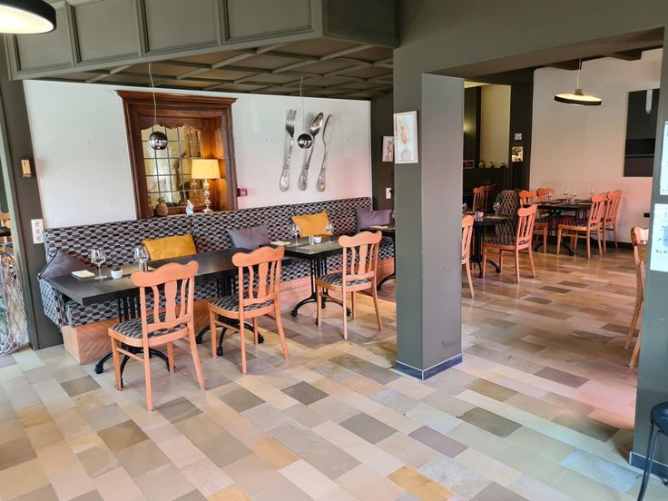 Le restaurant dispose d’un sas d’entrée, d’une importante salle de restaurant prévue pour environ 65 couverts, d’une terrasse, d’un bar, de sanitaires, d’une salle de préparation pour les petits déjeuners, d’une cuisine professionnelle, d’une réserve comprenant la chambre froide.