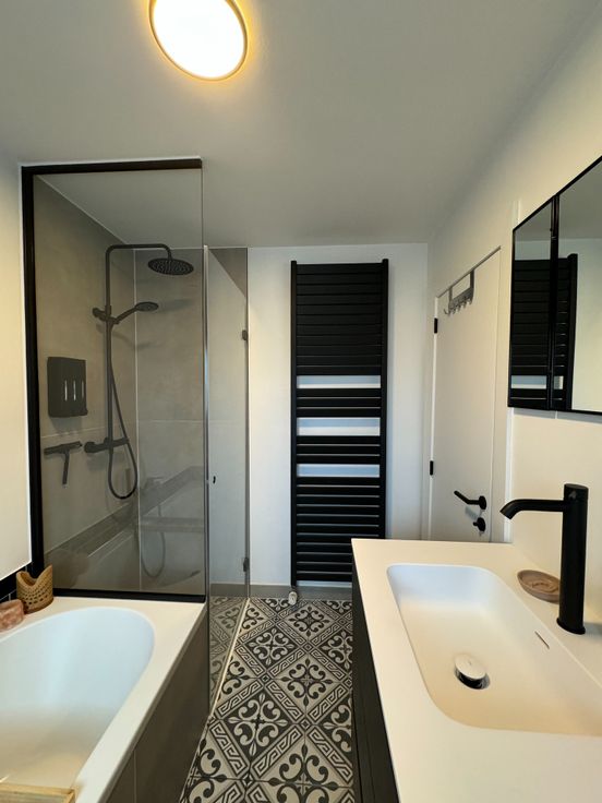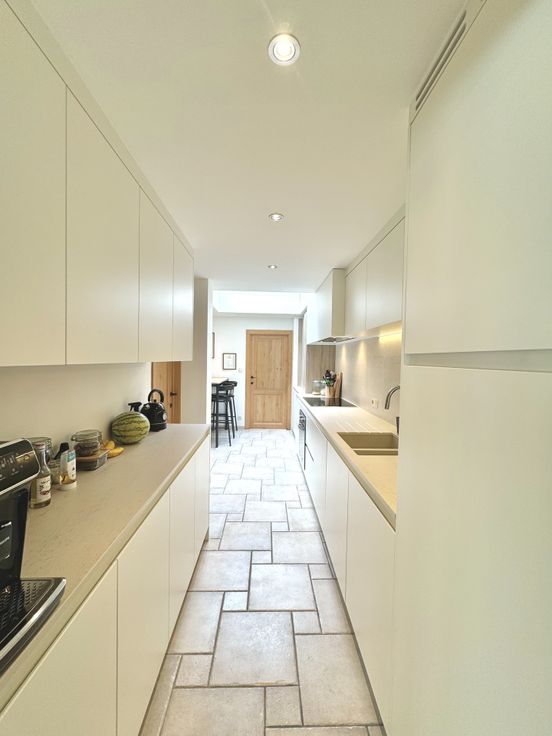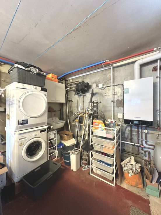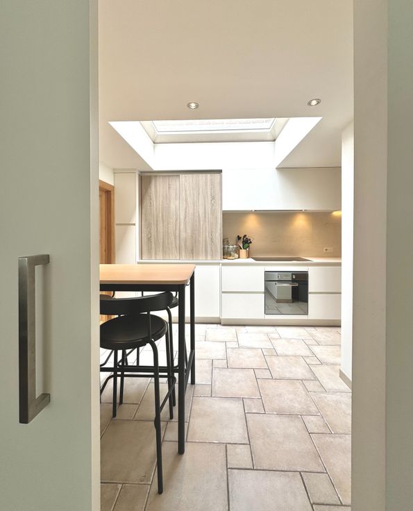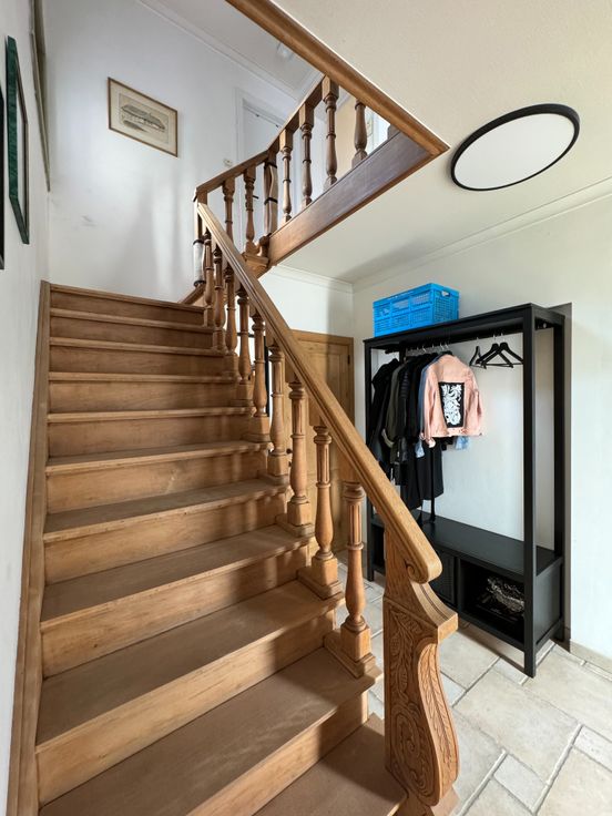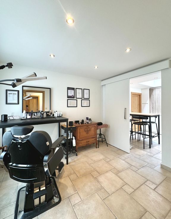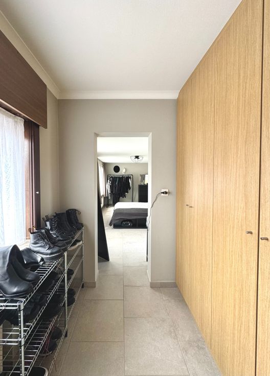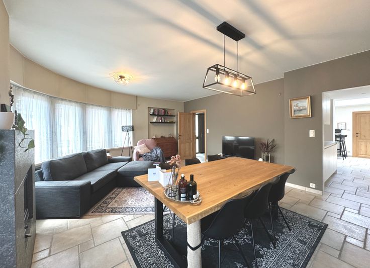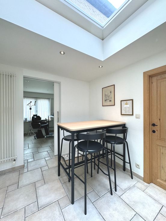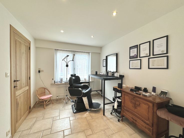 Wie op zoek is naar een ruime, degelijke woonst met alle comfort, voldoende kamers, garage en een buitenruimte met minimaal onderhoud, zal met deze eigendom alles vinden wat men nodig heeft; Dit is een gerenoveerde, onderhoudsvriendelijke en eveneens perfect onderhouden woning op een residentiële ligging met goede verbindingen tss Oost -en West-Vlaanderen, openbaar vervoer, winkels ed.. - Indeling: inkom met gastentoilet met handwasser en meubel, traphal; Links, een bureau/ praktijkruimte met oa doorgang via een moderne schuifdeur naar de keuken; Rechts: Lichtrijke leefruimte met plaats voor eetplaats en salon, gezellig Cassette op hout bekleed in natuursteen; directe doorgang naar de keuken in tijdloze stijl en met alle comfort: vaatwas, dubbele gootsteen met druipzone, ingebouwd afzuigsysteem, veel kastruimte, oven, microgolfoven, koelkast, .. doorgang naar een garage met geautomatiseerde sectionale poort, rechts een wasplaats en technische voorzieningen (HR-gasketel Vaillant, regenwaterpomp en een regenwaterput van 1.500L, ..); Vanuit de keuken kan men ook naar de droge, praktische kelder waar een nieuw ventilatiesysteem is geïnstalleerd alsook een waterverzachter; Eerste verdiep: nachthal die uitgeeft naar: een recente moderne badkamer (douche, ligbad, tweede toilet, handdoekradiator en wastafel met meubel met spiegel); Slaapkamer 1 is ruim en is voorzien van ingemaakte kasten; de kamer is toegankelijk via een tussenhal eveneens als (slaap)kamer 2...