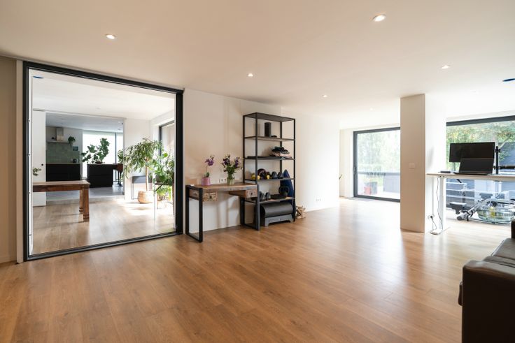 Ruim en Licht Interieur: Binnenin vindt u een prachtig afgewerkt interieur met een open indeling. Grote raampartijen zorgen voor overvloedig natuurlijk licht en bieden een prachtig uitzicht op de groene omgeving. De moderne afwerking en het gebruik van natuurlijke materialen creëren een warme en uitnodigende sfeer.