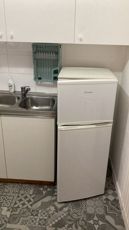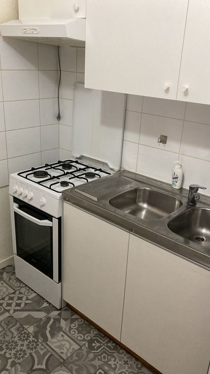 De studio heeft een mooie woon/eetkamer van +20 m². De keuken is uitgerust met een gasfornuis, oven, afzuigkap en koelkast met vriesvak. De doucheruimte heeft een douche, wastafel en toilet. Er is ook een gedeelde buitenplaats van 8 m² (exclusief gebruik met een andere studio). De verwarming wordt verzorgd door een gemeenschappelijke centrale verwarming op gas.