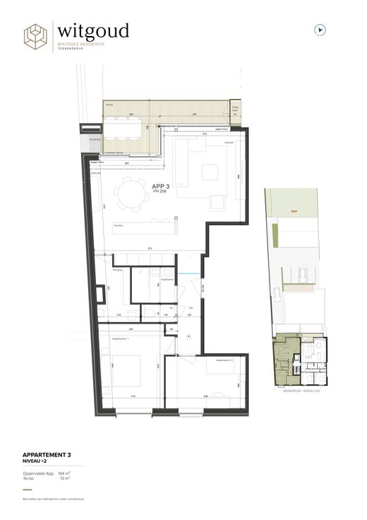 NOG 1 APPARTEMENT TE KOOP! Gelegen in de Stationsstraat 34 zal dit kleinschalig en uniek project binnenkort vorm geven aan 4 luxe appartementen, 1 exclusief penthouse en 1 dienstverlenende handelsruimte. "Witgoud" maakt een verwijzing naar het gelijknamige -verfijnde en luxueuze- edelmetaal; het is waardevol en behoudt ook zijn waarde. Deze eigenschappen onderscheiden, naast de kleuraccenten van de gevel (wit & goud), het project op unieke wijze en benadrukken het luxueuze karakter en de hoge duurzaamheid van het project. EXTRA TROEVEN: -6% btw Geniet van een verlaagd btw-tarief (6% i.p.v. 21%) voor alle werken van Witgoud die nog voor 31 december 2024 uitgevoerd worden (indien je aan de wettelijke voorwaarden voldoet). Naar verwachting zullen alle werken t.e.m. de plaatsing van het buitenschrijnwerk (=80% van de totale constructieprijs) tegen eind 2024 uitgevoerd zijn. -BEN20 Zonnepanelen, een warmtepompsysteem, vloerverwarming, … Witgoud is een uiterst duurzaam project. Dat resulteert niet alleen in een mooie besparing op je energiefactuur, maar daarnaast geniet je ook nog van 50% korting op je kadastraal inkomen gedurende 5 jaar.
