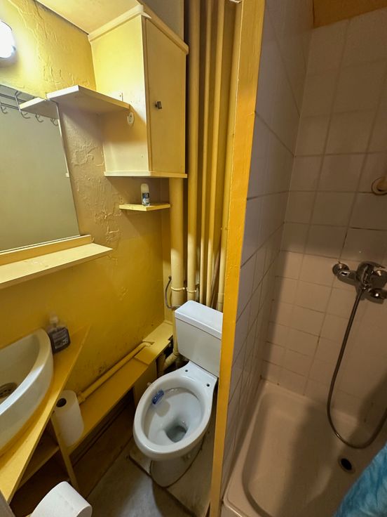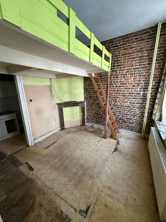 Dans une petite copropriété de 4 logements. Un logement au 1er étage à rafraîchir ou rénover de +-25M2 + espace Mezzanine. Comprenant une pièce de vie, une cuisine ouverte, une salle de douche séparée avec lavabo et toilette. En mezzanine la chambre. IDEAL 1ER INVESTISSEMENT VISITE 0470622042 EMAIL didier@dv-consult.be
