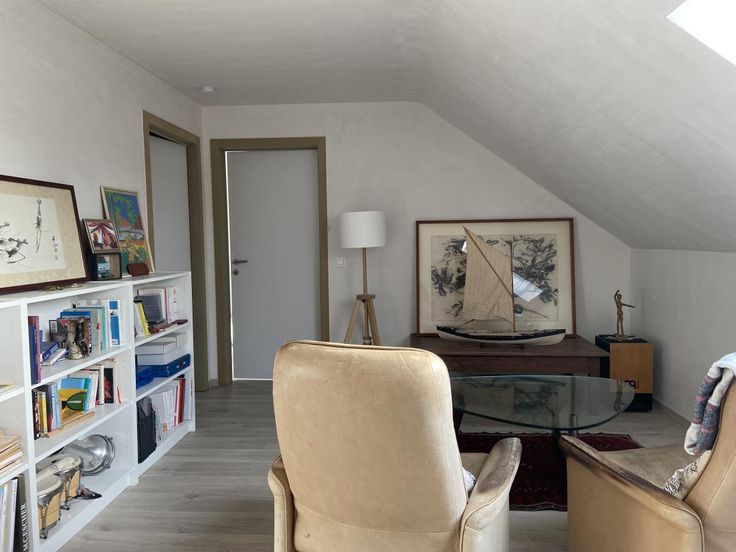 Aansluitend met de open keuken is een grote bergruimte voorzien van aansluitingen voor wasapparatuur. Via de berging heeft u eveneens toegang tot de garage. Verder heeft de gelijkvloerse ruimte een aparte kamer die men kan gebruiken als bureau, atelier..