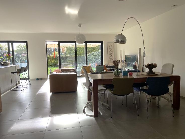 De woning bestaat uit een inkomhal met apart toilet, een ruime zonnige woonkamer met een open moderne keuken.