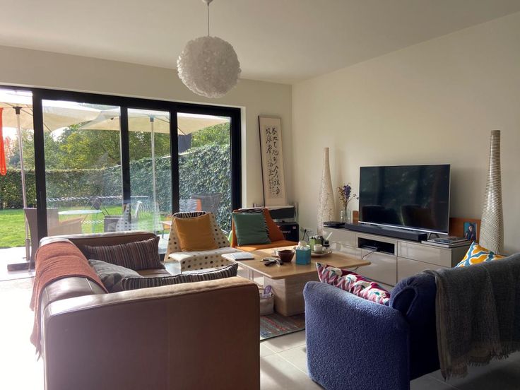 De grote schuiframen geven binnen optimaal invallend zonlicht en geven toegang tot de grote zuidtuin.