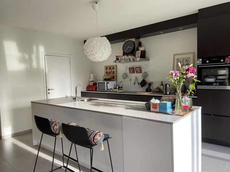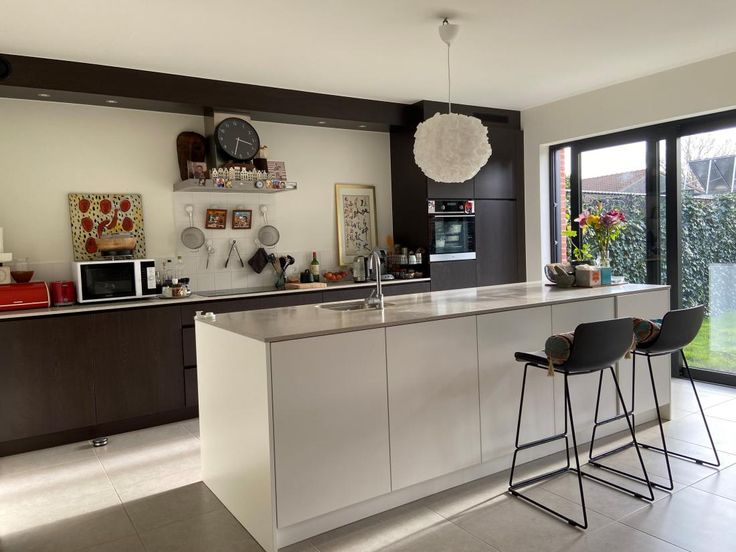 lichtrijke ruime woonkamer met open moderne keuken
