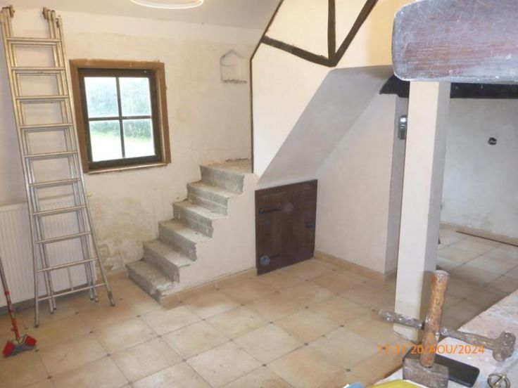 DEMANDE D'INFORMATION PAR TELEPHONE, PAS DE MAILS Rez : Hall, salon avec 2 cheminées, sàm, cuisine équipée, 2 caves Etage : palier, 3 chambres dont une avec mezzanine double et terrassa, salle de bain et bureau Extérieur: Jardin, terrasse, garage et passage latéral chauffage central mazout, châssis double vitrage partout, raccord: eau, électricité, égouts, citerne eau de pluie PEB 20240826004382 cat: G - 14 a 10 ca (RC : 230 €)