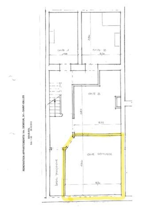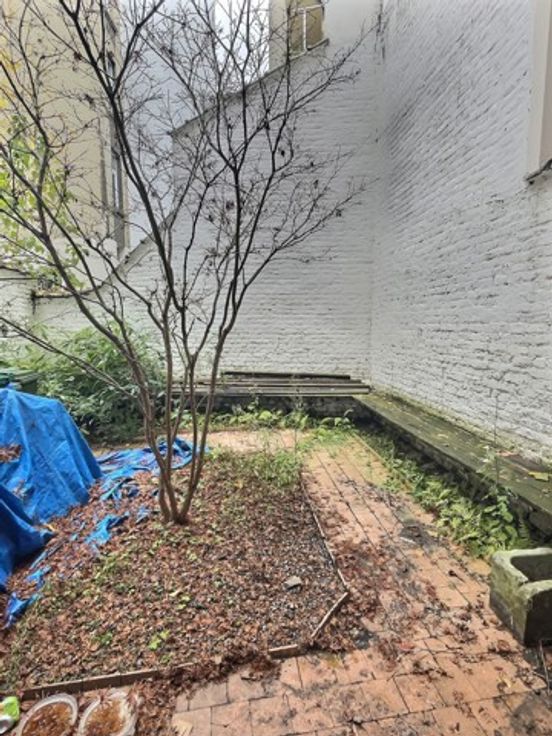 - Op de begane grond, een ruimte van +/- 50m2 met een voorterras van +/- 17 m2 en een achterterras van +/- 35 m2.