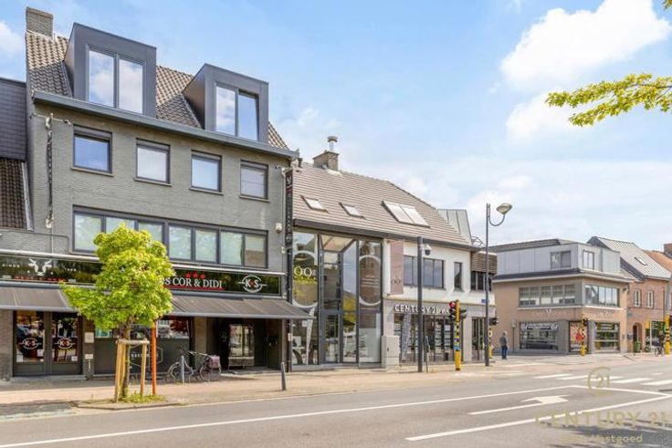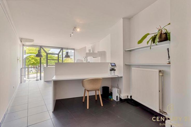 De opvallende etalage laat het daglicht heerlijk binnenvallen. De commerciële gelijkvloers is afgewerkt met massief eiken vloeren en maatwerk kasten.