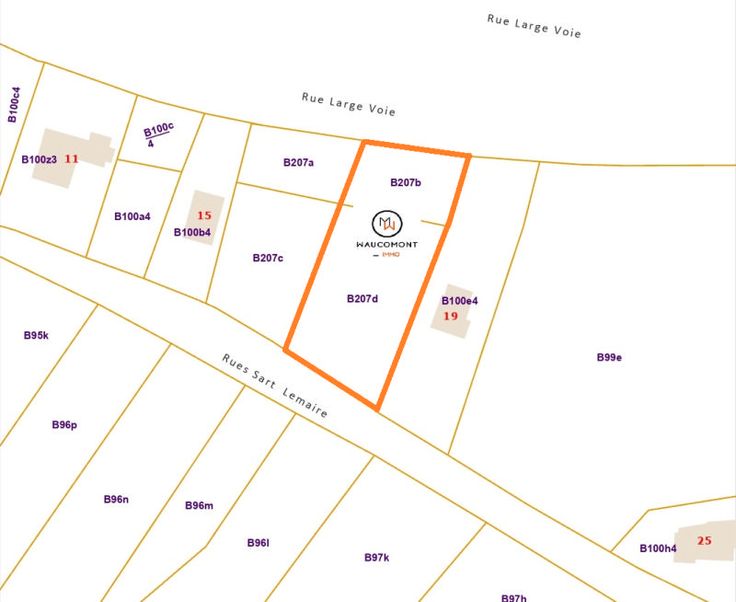Bien située sur les hauteurs de Tilff, belle parcelle de terrain (LOT 2 dans les photos) de +/- 1.576 m² en zone d'habitat accessible par 2 rues. Largeur façade à rue (rue Large Voie) : +/- 25 m et largeur façade à rue (rue Sart Lemaire) : +/- 27 m. Libre de constructeur! Cette parcelle ne fait pas partie d'un lotissement mais d'une division, il n'y a donc pas de prescriptions urbanistiques propres à un lotissement; il faudra toutefois respecter les prescriptions en vigueur (communale, régionale, ...). Tous les impétrants et raccordements (électricité, eau, traitement des eaux usées et pluviales, ...) et les éventuelles charges urbanistiques (frais de viabilisation, trottoir éventuel, …) sont à charge et aux frais de l’acquéreur. Cette parc elle est située à 4130 Tilff, entre la rue Large Voie et la rue Sart Lemaire. Références cadastrales: Esneux, 2ème division Tilff, Section B, n°207D et 207B. A ne pas manquer! Informations données à titre indicatif et non contractuelles. www.waucomont.be