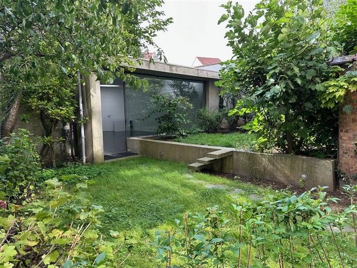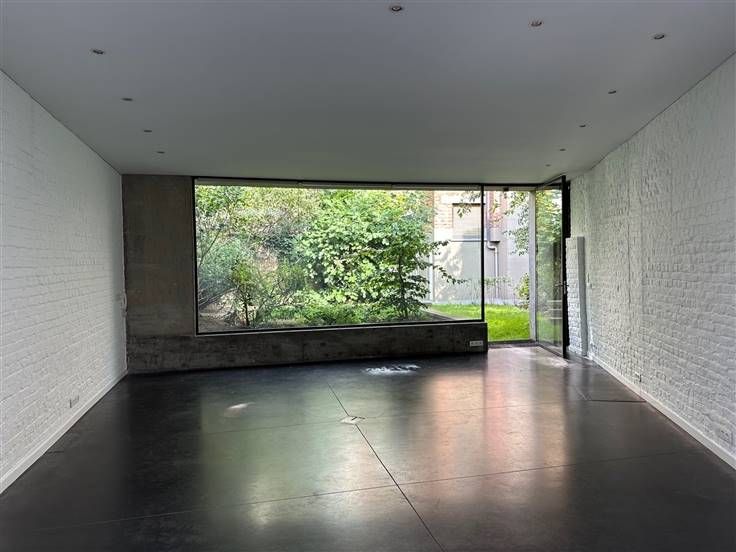Sorry er is geen nederlandse vertaling beschikbaar. Entre la Place Flagey, le Parlement Européen et le quartier de la chasse, dans une rue calme, venez découvrir au rez de chaussée au fond du jardin cet espace polyvalent contemporain en forme de triangle. Après avoir passé la grande entrée cochère commune aux vélos/motos/ poussettes, vous traversez un joli jardin privatif (+/-40m2) à l'espace. L'espace est moderne avec des lignes de type architecture "brutaliste". Grande baie vitrée (pleine est, espace modulable et divisible (salle de réunion + espace de travail). Chape lissée avec chauffage au sol. Wc et douche au fond, puits de lumière. Idéal comme atelier, espace bien être (massage), bureau d'architecte ou autre... vous y trouverez calme et harmonie. Parking possible dans la rue devant l'entrée cochère. Bienvenu pour une visite 0475620553!