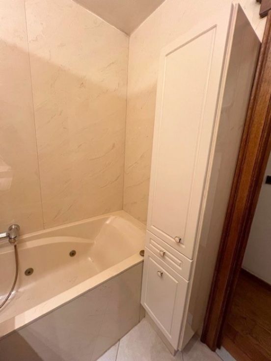 nette verzorgde keuken met ruimte om in te eten, aparte w.c., 2 ruime slaapkamers, badkamer volledig in de marmer met ligbad .