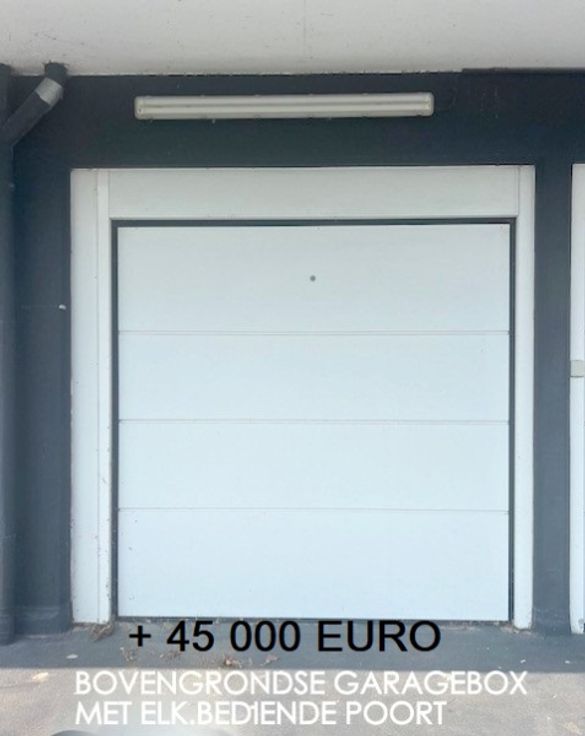 - bovengrondse garage box met elek bediende poort en extra bergkast aan 45 000 EURO