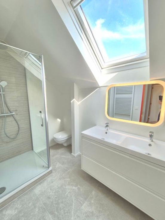 UCCLE - Entre Observatoire et la gare de Calevoet, belle exposition pour cette maison 3 façades entièrement rénovée de +/- 250 m2 dans une rue calme proche du Lycée Français. Hall d’entrée, vestiaire WC, garage , débarras, 2 caves au rez et grande pièce polyvalente donnant sur le jardin qui a été entièrement réaménagé, au 1er : séjour lumineux avec feu ouvert (nouveaux châssis, porte-fenêtre) donnant sur la terrasse et le jardin ; à l'avant : salle à manger et cuisine super-équipée récente. Au 2ème: 3 chambres avec parquet, 1 salle de bains neuve (en cours de réalisation), 1 dressing ; au 3ème étage: 2 belles chambres, une salle de douche (neuve - en cours de réalisation). Proximité gares et bus. Disponible au 15 août (1er occupation après rénovation). PEB : F - Chauffage central (chaudière à condensation). Nouveau châssis, nouvelle porte d'entrée et de garage -
