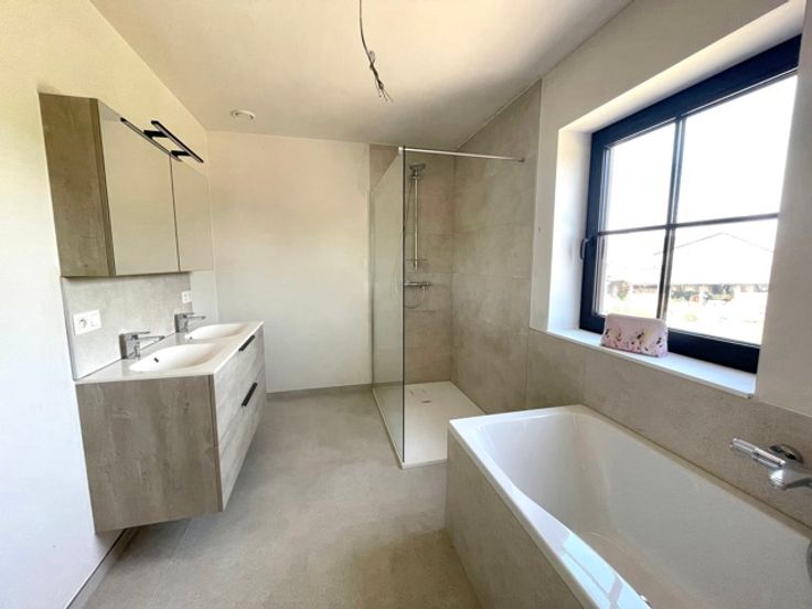 Deze HOB is gelegen in een landelijke omgeving met een goede verbinding naar Leuven, Aarschot, Tienen en St.-Joris-Winge. Het project komt in aanmerking voor het verlaagde BTW tarief van 6% op de constructie, wat u een aanzienlijk voordeel oplevert. Met oog voor energie-efficiëntie beschikt deze woning over zonnepanelen en een warmtepomp, waardoor je niet alleen bijdraagt aan het milieu, maar ook geniet van lagere energiekosten. Bovendien is er al een voorziening voor een laadpaal, waardoor de woning klaar is voor de groeiende trend van de elektrische mobiliteit. De woning biedt u op de gelijkvloerse verdieping een inkomhal met gastentoilet, een gezellige lichtrijke leefruimte met open keuken en berging. Op de eerste verdieping bevinden zich de drie slaapkamers, de badkamer met dubbele lavabo, bad en douche en een apart toilet. De geïsoleerde zolder biedt mogelijkheden tot uitbreiding, je kan hier naar eigen wens één of twee slaapkamers extra creëren. Een oprit voor meerdere voertuigen biedt comfortabele parkeermogelijkheden, terwijl de zuid gericht tuin met terras zorgen voor een harmonieus geheel waar je heerlijke momenten kunt beleven en genieten van de omgeving. Voor verdere informatie of een bezichtiging, neem gerust contact op met ons op 016 229 228 of 0478 570 999 of mail naar office@connect-immo.be EPB startverklaring - 2 kWh/m² - UC:18437 Grondwaarde 110.000€ + registratiekosten - Constructiewaarde 375.000€ + BTW (6% of 21%) + 5000€ aansluitingskosten nutsvoo