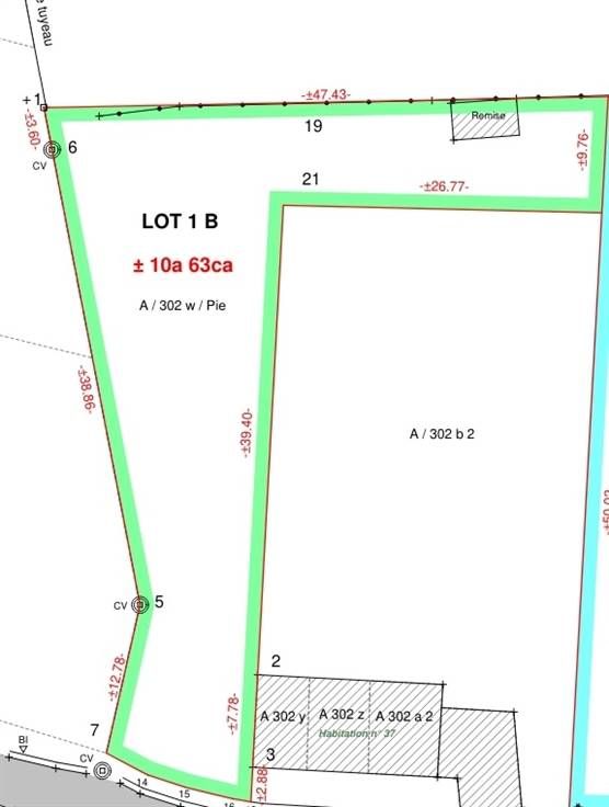 D'une contenance de +/-10ares 63 centiares, parcelle destinée à la construction d'une habitation 3 façades (permis d'urbanisme octroyé).