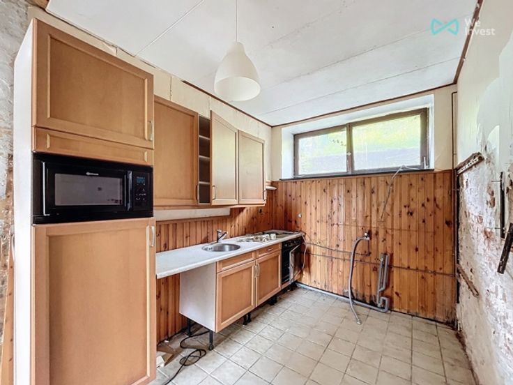 Belle maison trois façades en pierres à rénover avec jardin et dépendances située à Mazée. Installation électrique NON-CONFORME - PEB E n°20230510020600 - E totale : 98518 kWh/an - E spéc. : 761 kWh/m².an. Faire offre à partir de 50.000€ sous réserve d'acceptation des propriétaires. Informations indicatives et non contractuelles.