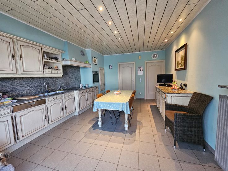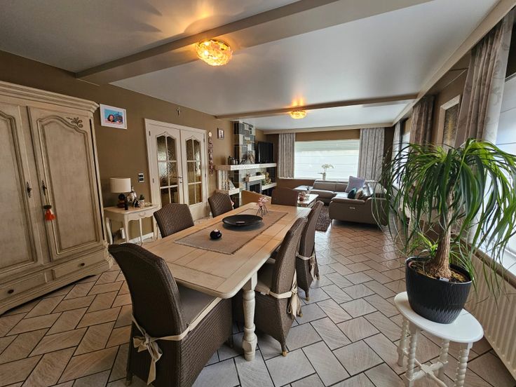 -IN OPTIE- Deze goed onderhouden villa is gelegen op een perceel van 14a49ca. Alle woonvertrekken bevinden zich op het gelijkvloers. De woning heeft een praktische indeling: via de inkomhal bereiken we de woonkamer (40,50m²) die bestaat uit een zithoek en een eetplaats, verder is er een ruime aparte keuken met eethoek, een inpandige garage en een berging/wasplaats met trap naar de eerste verdieping (= ruime, inrichtbare zolder) aanwezig. De nachthal heeft toegang tot de 3 slaapkamers (16m²,11,80m² en 11,80m²), een apart toilet en de badkamer die voorzien is van een ruime douche. Aan de achterzijde van de woning is er een veranda (15m²) aanwezig. Deze geeft uit op een mooi aangelegd terras. Even verderop vinden we een gezellige pergola en een aangelegd gazon. Het bijgebouw van 85m², bereikbaar via een aangelegde oprit, kan aangewend worden voor verscheidene doeleinden. De oprit biedt voldoende parkeergelegenheid. De woning is voorzien van 15 zonnepanelen. Bod vanaf 420.000 EUR mogelijk. Wenst u bijkomende informatie of een bezoek ter plaatse, bel of mail ons! T.: 054 31 70 60 - E-mail: info@groepbg.be EPC label D - UC: 3129347-RES-1. P-score: A - G-score: A. Stedenbouwkundige informatie: vergunning, woongebieden met landelijk karakter en agrarische gebieden (achteraan), geen voorkooprecht, geen rechterlijke of bestuurlijke maatregel opgelegd, verkavelingsvergunning. Renovatieplicht: nee