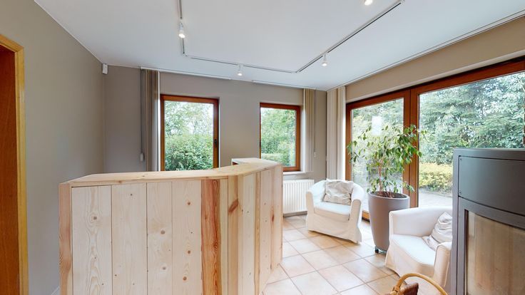chauffage central mazout, chaudière bois, panneaux solaires thermiques, compteur bihoraire, châssis bois double vitrage.