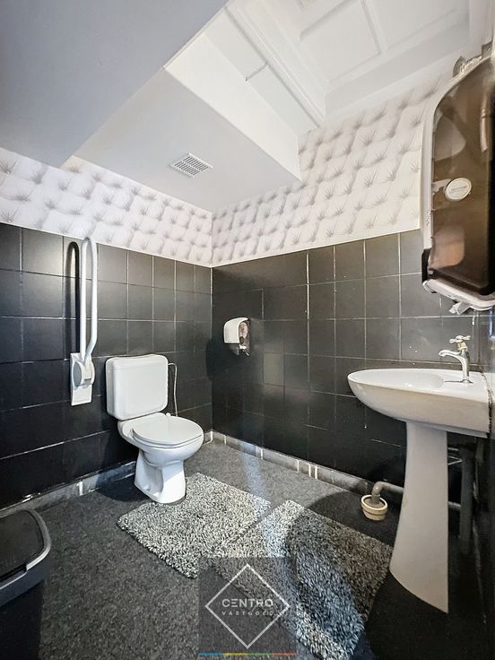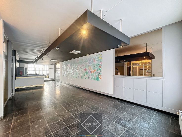 Gelijkvloers (± 185m²): inkomhal (afzonderlijke toegang naar het appartement) met traphal - keuken (30m², links) - gelagzaal met bar (95m²) en BINNENKOER (30m²) - sanitaire ruimten (dames/heren).