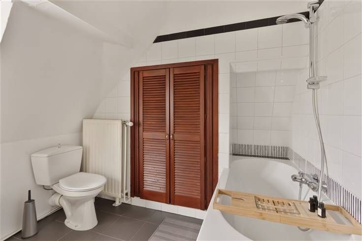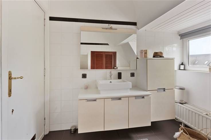1ste verdieping: Nachthal / 2 slaapkamers (15m²; 4,5 x 3,3m) / badkamer (3,1 x 2,6m) met wastafel, ligbad en wc (voorzien van inmaakkast).