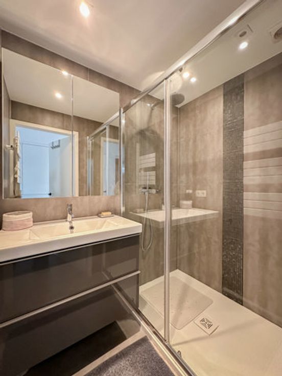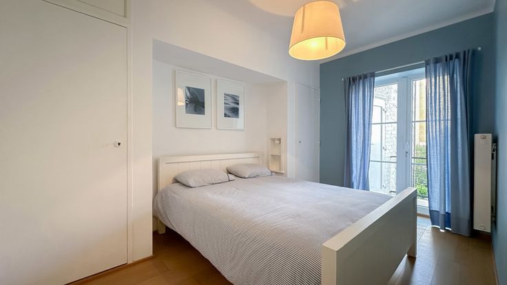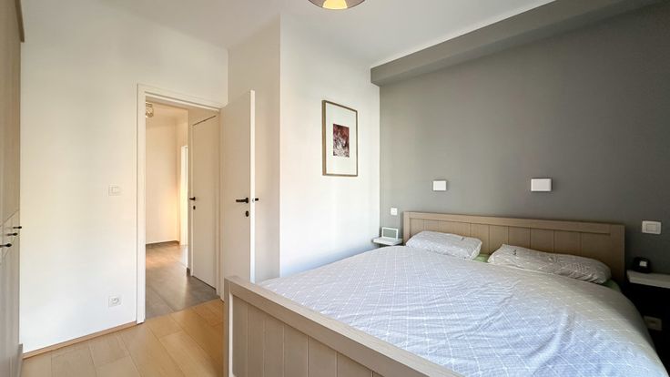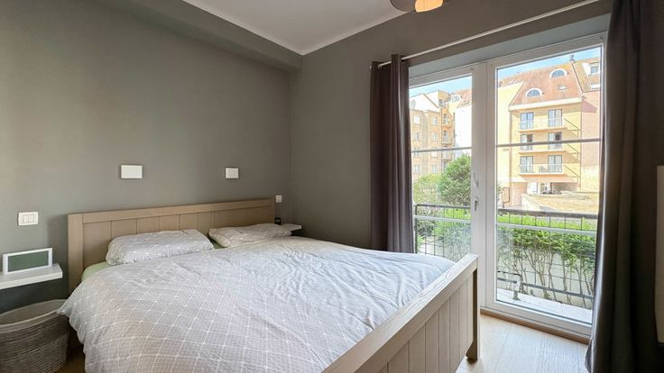 Het appartement beschikt over twee volwaardige slaapkamers, beide met voldoende opbergruimte en grote ramen die zorgen voor een aangename lichtinval. Beide kamers geven uit op een terras aan de achterzijde. De moderne douchekamer is voorzien van alle comfort en een stijlvolle afwerking.