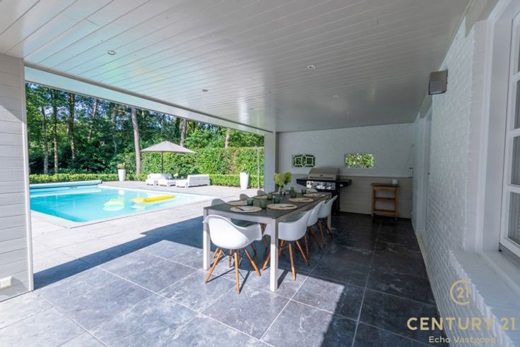 Ontdek deze prachtig gerenoveerde vrijstaande villa gelegen in een rustige residentiële wijk. De woning is volledig omheind, wat zorgt voor privacy en veiligheid. Een van de hoogtepunten van deze villa is het heerlijk verwarmde zwembad, ideaal voor ontspanning en recreatie het hele jaar door. Verder beschikt de woning over een grote, overdekte terrasruimte waar u het hele jaar door kunt genieten van het buitenleven, ongeacht het weer. Bij het betreden van de villa wordt u verwelkomd door ruime, open leefruimten met veel natuurlijke lichtinval, die een naadloze overgang naar de buitenruimtes creëren. Achter de open leefruimten bevindt zich de volledig geïnstalleerde keuken, uitgerust met hoogwaardige apparatuur en voldoende werkruimte voor de enthousiaste kok. De woning is gelijkvloers en levensbestendig, wat betekent dat alle essentiële woonruimten zich op de begane grond bevinden en gemakkelijk toegankelijk zijn. Op de begane grond vindt u ook de master bedroom met een ensuite luxe badkamer. Daarnaast is er een polyvalente ruimte die ideaal is als bureau, speelkamer of hobbyruimte. De bovenverdieping biedt extra woonruimte met een vide die een prachtig uitzicht geeft over de leefruimten beneden. Daarnaast zijn er twee ruime slaapkamers, een badkamer en een bureauruimte op de bovenverdieping, wat deze woning nog aantrekkelijker maakt voor gezinnen en mensen die thuiswerken.
