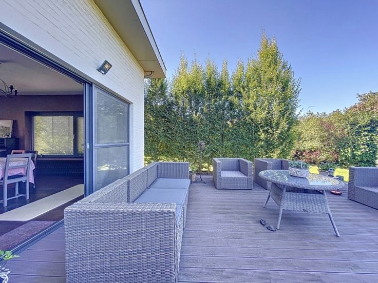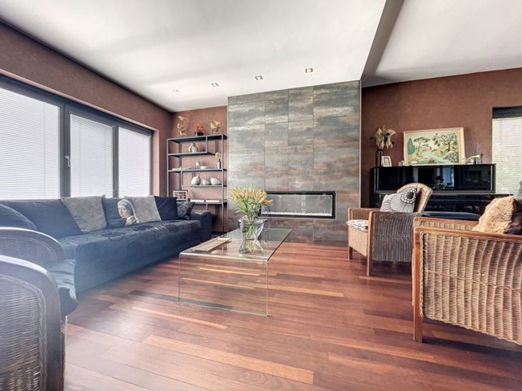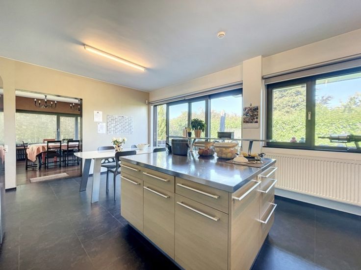 Idéalement située ne manquez pas cette imposante villa en parfait état proposant de nombreuses possibilités (prof. libérale, famille nombreuse, co-living,...) ! Elle présente 272m2 habitables hors sous-sol (surface entièrement cavée) et se compose en rdc d'un vaste hall d'entrée avec vestiaire et toilettes, d'un magnifique séjour avec cheminée design donnant sur la superbe terrasse de 60m², d'une vaste cuisine super-équipée avec également son accès à la terrasse, d'un salon TV et de deux vastes bureaux. Le 1er étage propose un vaste hall de nuit avec un wc indépendant et des placards encastrés, une très belle salle de douche, 5 chambres sont 4 complétées par un débarras proposant un beau rangement, une bénéficiant de sa salle de douches privative et la dernière avec son beau coin dressing agréablement aménagé. Le 2e étage sur béton (idéal pour l'acoustique) est à aménager et il bénéficie d'un véritable escaliers d'accès. Le bien est entièrement cavé et présente un vaste garage, une buanderie, une cave à vins ainsi que deux caves de rangements dont une utilisée en coin jeux. Châssis DV alu Schuco, toiture récente et isolée, CC gaz récent. FO àpd 600.000€. A visiter sans tarder! Visite Virtuelle: https://nodalview.com/s/3jtDnhOR11lvaLTCjMO_Ag