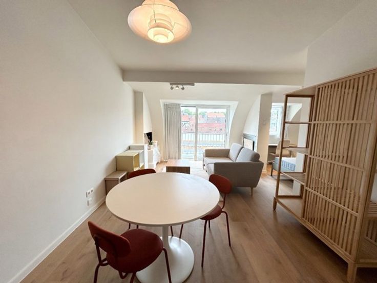 CONTACT: Laura op 0473 41 35 62 of via info@vicusvastgoed.be Mobiscore: 9,6/10 Epc-score: B Welkom in deze net gerenoveerde bemeubeld studio op de bovenste verdieping in residentie Campus vlakbij het Sint-Pietersplein. De studio werd zopas volledig gerenoveerd en werd uitgerust met een warmtepomp en zonnnescreens. De studio werd voorzien van een splinternieuwe keuken met inductievuur, dampkap, combi-oven, frigo, spoelbak en voldoende opbergruimte. De studio werd volledig uitgerust met nieuwe meubels en is dus helemaal gebruiksklaar. Naast de zitruimte is een slaaphoek voorzien met een dubbel bed en een bureau. De studio heeft ook een privatief zuidwest georiënteerd terras. Er is een aparte badkamer met enkel wasmeubel, toilet en grote inloopdouche. Er is ook een aparte bergruimte waar er een aansluiting voor een wasmachine voorzien is. Tot slot is er een afgesloten binnenkoer waar er plaats is voor het stallen van fietsen. Geringe gemeenschappelijke kosten (geen lift) Aparte tellers Verhuurwaarde: €750 CONTACT: CONTACT: Laura op 0473 41 35 62 of via info@vicusvastgoed.be