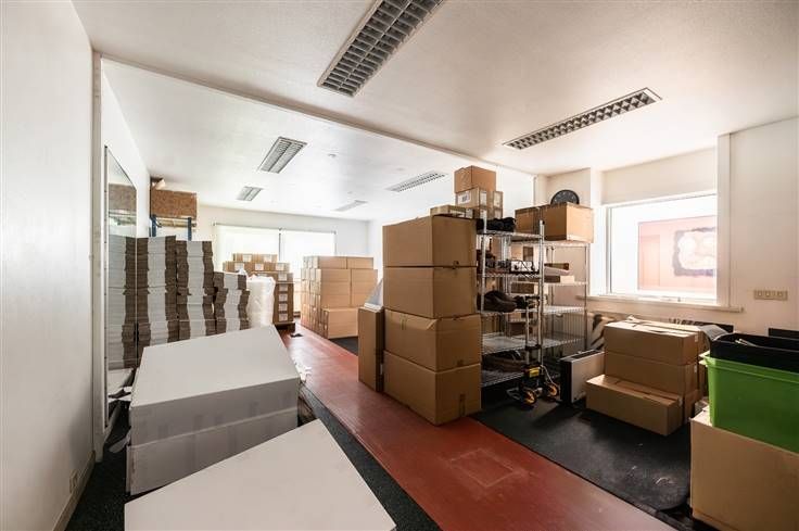 Op de eerste verdieping bevindt zich een ruim appartement of bureauruimte van 95 m².