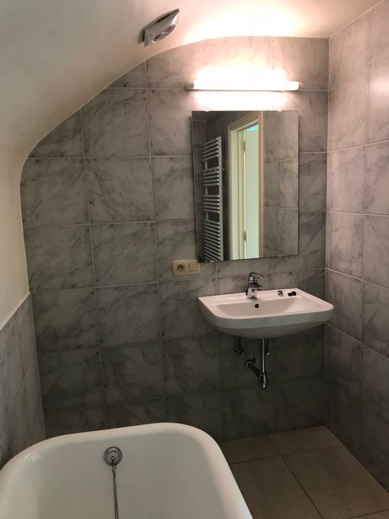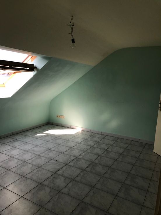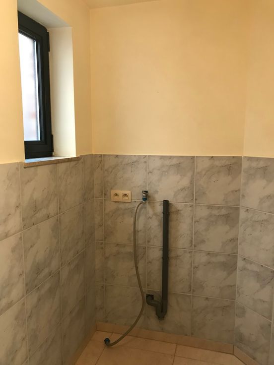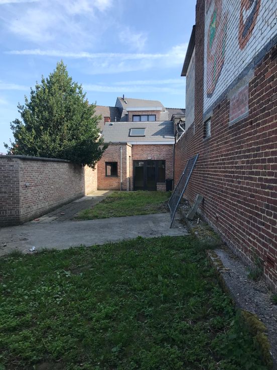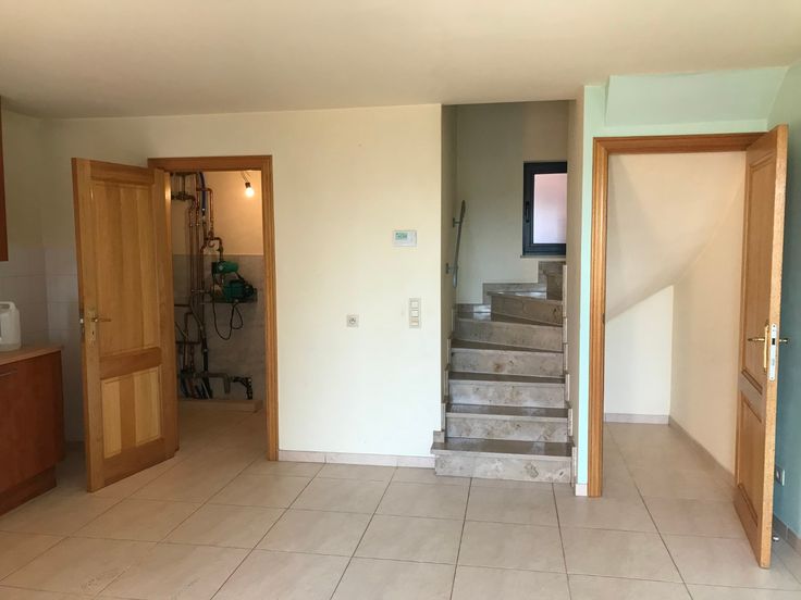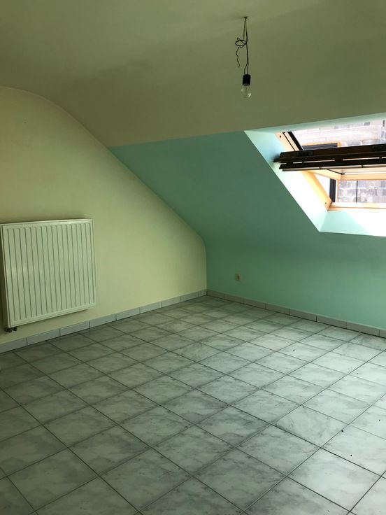 Appartement op gelijkvloers met grote tuin en klein buitenterras. Indeling appartement : inkom, open keuken met living, stookkamer met aansluiting voorziening was- en droogkastmachine, kleine berging onder trap. Op de bovenverdieping is er een slaapkamer onder het schuine dak met verbinding naar de badkamer. Badkamer bestaat uit toilet en ligbad en lavabo.