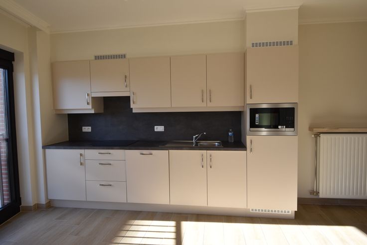 Ingerichte open keuken: inductie-kookplaat, dampkap, ijskast + diepvriesvak, vaatwasmachine, microgolf