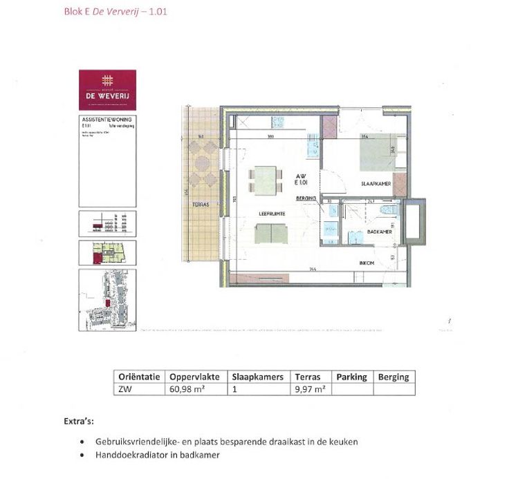 Te koop Assistentiewoning met 1 slaapkamer en terras in ‘De Weverij’