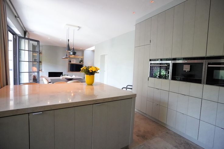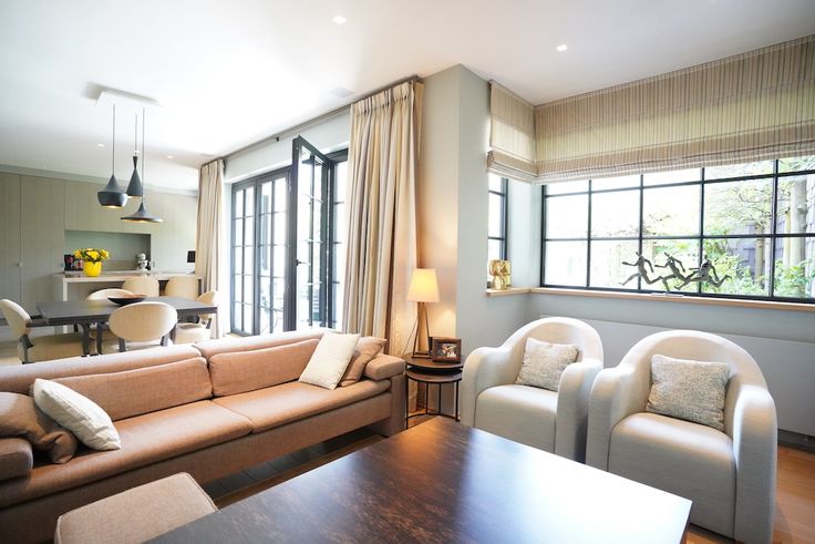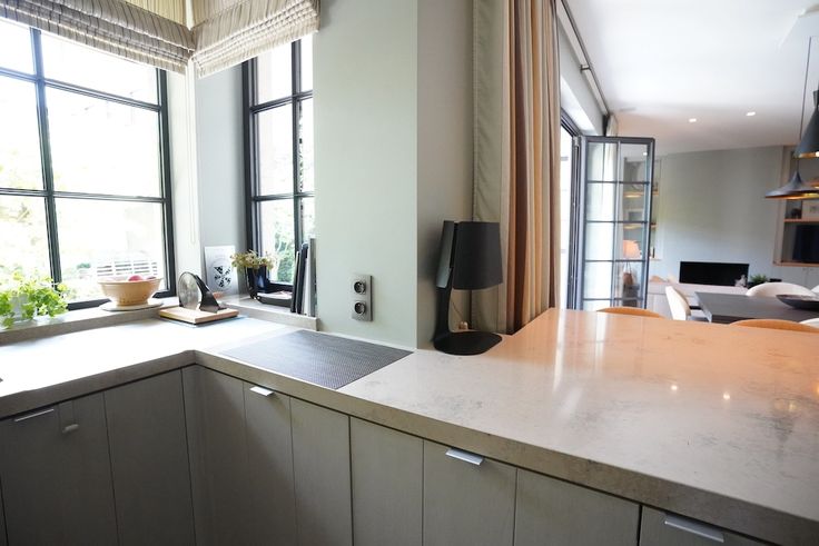 De ruime, licht overgoten living vormt het hart van het huis en heeft een interessante indeling - open keuken, ontworpen door de gerenommeerde Frank Tack, is een waar meesterwerk : dankzij verfijnde details en kwalitatieve materialen straalt deze keuken niet alleen luxe uit, maar biedt hij ook een gezellige en functionele ruimte waar koken een plezier wordt - verzorgde was- en bergruimte.
