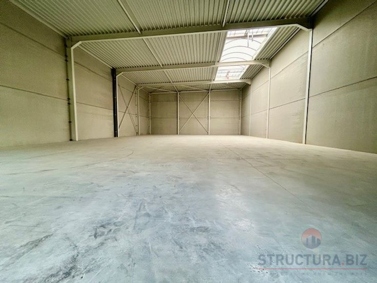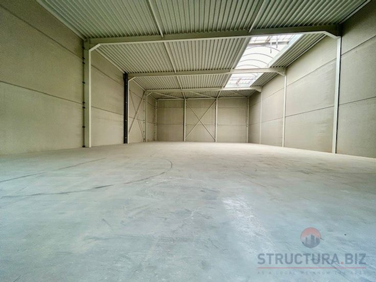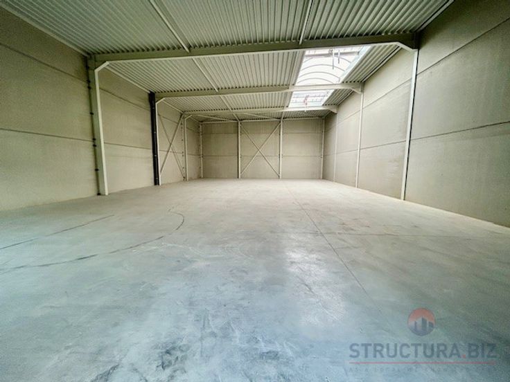Nieuwbouw KMO-unit van 390 m² opslagruimte met 3 privatieve parkeerplaatsen te huur.